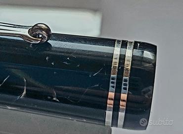 VINTAGE NEW Delta - Europa Collection Penna stilografica Corpo in celluloide nera tornita a mano da Maestri Artigiani Delta con finiture argentate. Pennino in oro 18k Caricamento a stantuffo