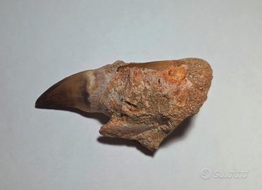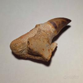 Dente di Mosasaurus con radice e frammento di osso del cranio e dente in crescita.