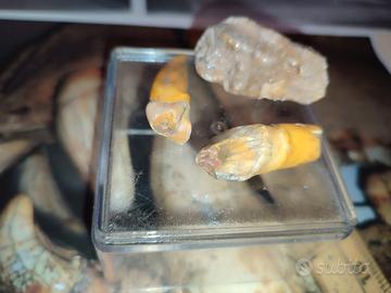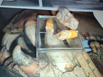 DENTI di ORSO DELLE CAVERNE (Ursus Spelaeus) dalla SLOVENIA. Periodo: Pleistocene (11000-800000 anni) Denti originali fossili CANINO, GROSSO MOLARE E PREMOLARE di ursus spelaeus di antica collezione slovena, trovato in grotta locale negli anni sessanta. Dentina e smalto di QUALITÀ.