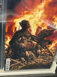 📦 Graded 9.7 Mint+ – EGC (European Grading Company) 🔥 Cardstock Cover – Omaggio alla morte di Jason Todd (Robin) 🇺🇸 Edizione USA – Versione originale •Editore: DC Comics •Data di uscita: Maggio 2022 •Storia: Mariko Tamaki, Matthew Rosenberg •Disegni: Amancay Nahuelpan, Fernando Blanco •Copertina: Lee Bermejo •Tipo di edizione: Lee Bermejo Variant •Formato copertina: Cardstock (rigida) •Condizione: 9.7 Mint+ certificato EGC (European Grading Company) •Custodia sigillata – ideale per esposizione e protezione 🖼️ Copertina Iconica – Omaggio alla Morte di Robin La straordinaria cover di Lee Bermejo rende un potente tributo visivo alla storica scena della morte di Jason Todd, secondo Robin, ucciso nel classico arco narrativo “A Death in the Family” (1988). Batman in ginocchio tra le macerie, con il corpo esanime di Robin tra le braccia, richiama direttamente la tragica immagine che ha segnato un’epoca nel fumetto americano. •🎨 Variant cover omaggio ad una delle storie più controverse e amate della DC •🖌️ Illustrazione potente e drammatica firmata da Lee Bermejo, uno degli artisti più apprezzati della scena contemporanea •🏆 Grading eccellente 9.7, alta qualità e rarità •🧩 Parte dell’arco moderno “Shadows of the Bat”, ma con richiamo narrativo e grafico al passato leggendario •📦 Edizione americana con copertina rigida (cardstock) •Must-have per i fan di Batman e dei grandi momenti della sua mitologia •Oggetto da esposizione perfetto grazie al grading e alla forza visiva della copertina •Pezzo ricercato per chi ama le variant commemorative e le connessioni tra passato e presente DC Comics •Ottimo investimento per il valore storico e artistico Spedizione veloce e ottimo imballaggio