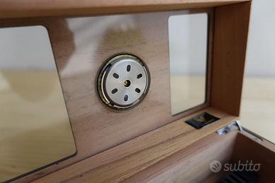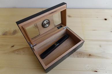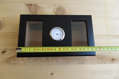 Scatola per sigari con deumidificatore e igrometro. Usata pochissimo, praticamente nuova Misure: 19 x 11 x 6,5 cm Per maggiori info o foto scrivimi pure che ti rispondo volentieri ☺️