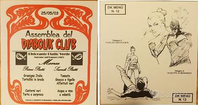 VENDO GADGET PRODOTTI PER PRANZI/ASSEMBLEE DIABOLIK CLUB MENU' N° 12 DEL 2003 10,00 € MENU' 10° ANNO DEL 2006 20,00 € MENU' 15 ANNO FIRMATO MONTORIO+DI BERNARDO+BRANDI PAOLO E SERGIO ZANIBONI E ALTRI 50,00 € MENU' GRIGLIATA DIABOLIKA DEL 2018 FIRMATO CASTELLI+CASERTANO+ TRUSCIA+MONTORIO+NUNZIATI E ALTRI 50,00 € MENU' GRIGLIATA DIABOLIKA 2019 FIRMATO FACCIOLO+MONTORIO+ALTARIVA+NUNZIATI + CARTOLINA 100 COPIE NUMERATA 5/100 60,00 € MENU' PRANZO 2018 + ALTRI GADGET FIRMATI 60,00 € (Non+disponibile)