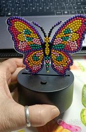 Bellissimo diamond painting a forma di farfalla, realizzato a mano e dotato di illuminazione LED (8,5x10,5 cm + base LED 8,5x4 cm)