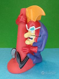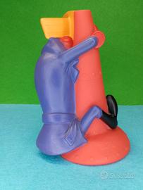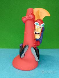 Ha quasi 30 anni questo pezzo di Dick Dastardly di Wacky Races. È il tappo di un contenitore shampoo che nella parte sotto aveva un resto dell'aereo. Unico in Italia, dove veniva prodotto. In gomma. Alto 16 cm.