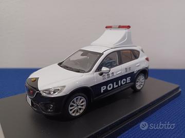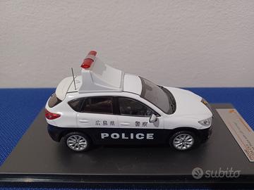 Automodello PremiumX, in scala 1:43, del SUV Mazda CX-5 (2013) con livrea bianca e nera della Polizia giapponese, nella versione con display LED per avvisi montato sul tetto.