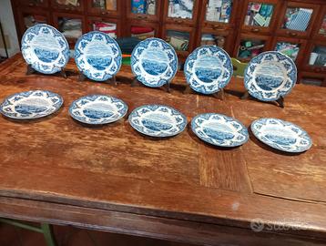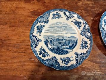 Dieci bellissimi piatti di porcellana inglese, da dolce/frutta. Serie "Old britain castles", marchio Johnson Bros England. I piatti riproducono "Chatsworth Castle", come era nel 1792. Ritiro a carico dell'acquirente, data la delicatezza degli oggetti. Non spedisco.