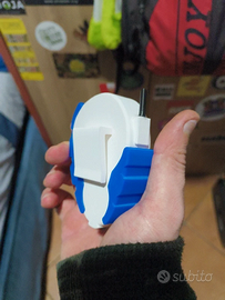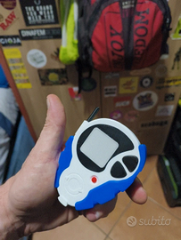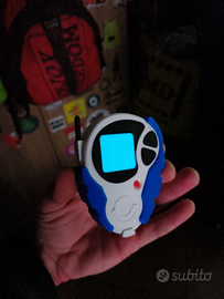 Digivice Digimon bianco e blu di seconda generazione con schermo che si illumina al buio