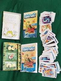 Vendo gioco da tavolo / boardgame con carte "Dino Twist", copia originale con segni di utilizzo sulla scatola ma carte e istruzioni come nuovi, edizione francese con regole stampate in italiano, dedica e fumetto in francese dell'autore, prezzo originario di listino: 20€.