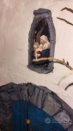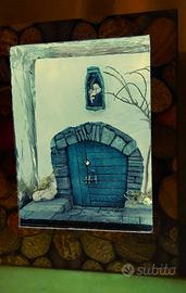 Il diorama, creato completamente a mano in scala 1:18 come da portone esistente (vedi foto 6), è inserito in una scatola di cartone che funge da teca con, all'interno, illuminazione a led comandabile dal retro (foto 5) Le batterie alcaline sono fornite e facilmente sostituibili svitando una piccola vite e aprendo il coperchio del vano pile. Il diorama è stato creato in un unico esemplare e viene fornito con attestazione di autenticità dell'artista Nyx. Misure diorama: L 21 H 28 P 11, Dimensione scatola L 23 H 31 P 15,5
