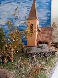 Vendo diorama 2 ° Guerra mondiale Scala 1 72 completamente fatto a mano, curato nei particolari. Dimensioni 30 x 18 x 22. Carro russo T34/76 USSR 1942.