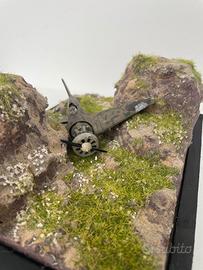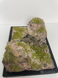 Vendo diorama artigianale raffigurante un aereo militare precipitato tra le rocce, realizzato e dipinto a mano con grande cura dei dettagli.