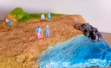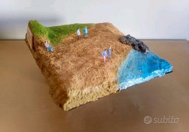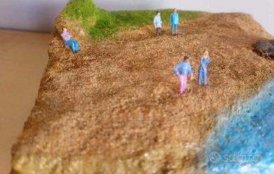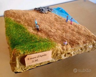 Diorama Artigianale Marino in Miniatura 1:100 lavorato e dipinto completamente a mano. Pezzo Unico. Tema: il Mare D' Aprile. Misure: 16 x 16 cm. Codice D30