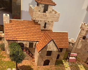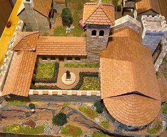 Vendo riproduzione di un borgo medioevale, dimensioni 80x50 cm, realizzato con materiali originali (ceramica, legno, tegole, ecc.) comprendente N° 2 volumi (Modellismo medioevale e Storia del medioevo) e copertura antipolvere in plexiglass trasparente.