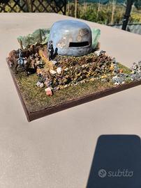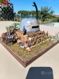 Diorama bunker tedesco in scala 1/35 composto da 5 figurini 2 tedeschi di cui 1 a cavallo e 3 paracadutisti americani pronti per un colpo di mano .....