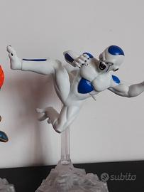 Dettagli Fedeli:I dettagli sono curati, dalla posa da combattimento di Goku (calcio volante) al volto rabbioso e dettagliato di Freezer. La qualità della pittura esalta i muscoli e le espressioni.