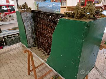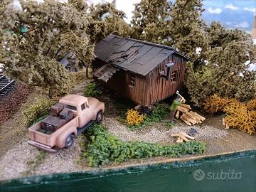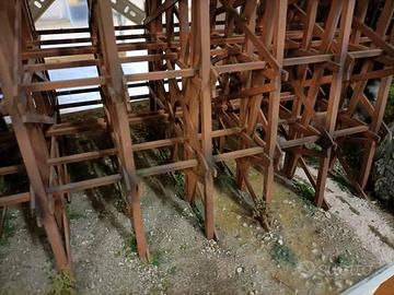 Diorama ferroviario in H0 rappresentante un ponte in legno "trestle" classico USA .