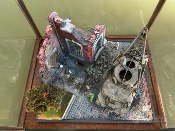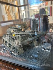Vendo Diorama M4 Sherman Recovery – Ambientazione urbana WWII – Scala 1:35 con teca - diorama artigianale in scala 1:35 rappresentante un M4 Sherman modificato per il recupero mezzi, ambientato in uno scenario urbano bombardato della Seconda Guerra Mondiale.