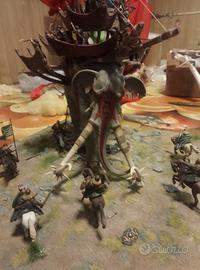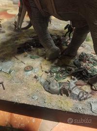 vendo diorama per collezionisti montato e dipinto a mano che rappresenta una scena della battaglia dei campi del pelennor tratta dal film il signore degli anelli il ritorno del re. nel diorama è presente un mumak con 12 guerrieri haradrim e 7 cavalieri di rohan compresi theoden ed eomer. per la realizzazione sono stati usati colori e oggetti scenici presi dal film originale. disponibile anche per la consegna a mano zona piacenza e aree limitrofe