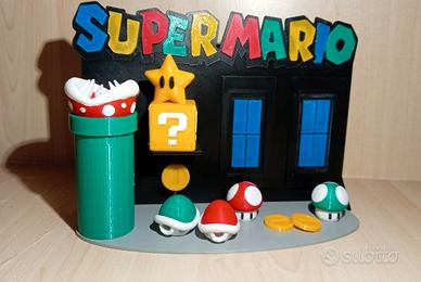 Vendo fantastico diorama ispirato al mondo di Super Mario, realizzato a mano con stampante 3D in plastica PETG: resistente, sicura e con colori brillanti.