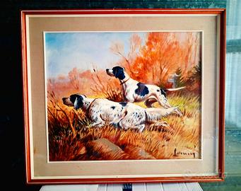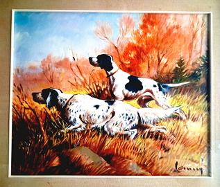 Dipinto ad olio 60x50 mis.int. a tema cani a caccia