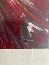 Vendo due dipinti astratti originali su carta, incorniciati con passepartout bianco e cornice rossa.