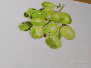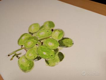 un bel dipinto d'uva fatto su tela da un piccolo artista. il quadro ha uno spessore di 1,6cm ha una lunghezza di 40cm e un' altezza di 20cm