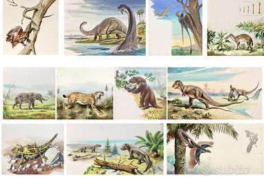 Dipinti originali animali preistorici di G. Pozzi