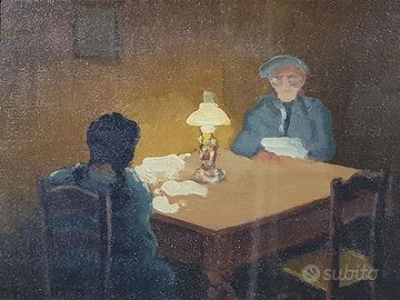 Soggetto: Due vecchi intorno ad un tavolo illuminato da una lucerna.
