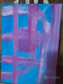 Dipinto a mano acrilico su tela di cartoncino pressato astratto cm 23x33 con glitter rosa