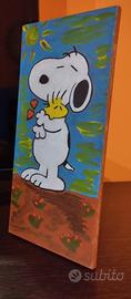 piastrella dipinta a mano misura 12 cm x 24 cm raffigura due personaggi del cartone animato peanuts Snoopy e Woodstock