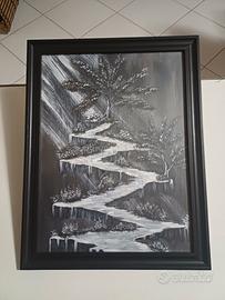 "Vendo splendido dipinto realizzato interamente a mano con tecnica acrilica su cartoncino telato. L'opera rappresenta un suggestivo sentiero a zig-zag che si inerpica tra alberi stilizzati, evocando un senso di ascesa e mistero.Tecnica: Acrilico su cartoncino telato.