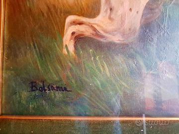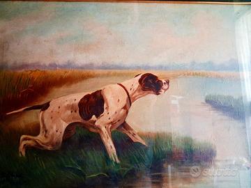 Dipinto ad olio 70x50 mis.int. a tema cane da caccia