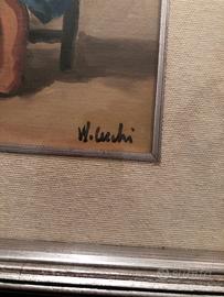 Dipinto su tela ad olio. Autore Walter Cucchi. Il dipinto misura cm 23 per cm 17. Il quadro completo di cornice misura cm40 per cm 34. Garantisco imballo anti urto. Il quadro e’ in perfette condizioni.