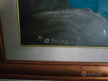 Splendido dipinto ad olio Veduta di Capo Caccia, Alghero, misura 70x100 cm. la tela con la cornice in totale 91,5X121,5 cm. cornice compresa nel prezzo, del famoso Pittore Sassarese Mario Dessena, dipinto nei primi anni 90, solo ritiro a domicilio senza ulteriori spese visto la grandezza del dipinto