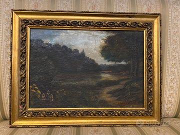 Dipinto antico olio su tavola paesaggio XIX secolo