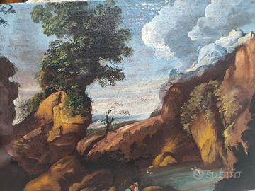 Dipinto antico olio su tela della fine del 700 raffigurante paesaggio.misura59,2x43
