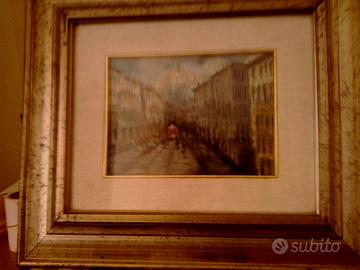 Olio su rame - cm.18x24 - del pittore italiano- Lucio Cargnel 1903- 1998 Soggetto: C.so Vittorio Emanuele Milano - Datato 1984 -