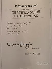 Pittura acrilica e a olio, nei toni caldi del grigio, del marrone e del blu, con texture fresche di un tramonto a New York. Si tratta di un pezzo di grande formato. La tela viene spedita arrotolata in un robusto tubo, per via delle sue grandi dimensioni e per garantirne la sicurezza. Progettato per un telaio da 120 x 80 x 3 cm. La tela spedita è più grande.