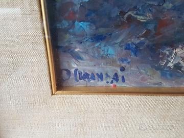 Olio su tela 50x40. Firmato in basso a destra. Curandai si è distinto prevalentemente come paesaggista ma qui è proposta un'immagine floreale. L'opera è corredata di cornice in stile
