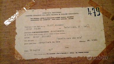 a- Milano nel, 1971. Pittore, autodidatta.. Rientrato in Italia, ordina nuove personali dalla metà degli anni Cinquanta e per tutto il decennio successivo a Catania, Milano, Roma e Como. Nel 1973 a Catania viene allestita una importante retrospettiva al Palazzo della Borsa. Partito, negli anni siciliani, a raffigurare nella sua pittura i carretti con le colorite storie dei pupi utilizzando tinte preferibilmente piatte, introduce poi nella sua tavolozza cromie delicate, vibranti, e si concentra su temi pervasi da una marcata spiritualità. Soggetti favoriti sono le figure femminili, nature morte di fiori, paesaggi. Dopo il 1960 entra nella sua opera un'importante componente decorativa fatta di arabeschi ed effetti luminosi e cromatici mobili e sfumati. Dal 1967 compaiono su tali sfondi personaggi antropomorfi, sorta di fantasmi, che si librano nello spazio della composizione. La produzione ultima dell'artista è invece caratterizzata da dipinti dove segni, forme geometriche ripetute e ampie macchie di colore sono resi con cromie intense e vivide. Bibl.: Alicò, Catania, Palazzo della Borsa, 1973.