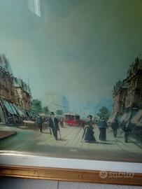 Cedo al miglior offerente e così come ritrovato dipinto di buone dimensioni (50x70) di Luciano Lutring datato 1986 raffigurante scena cittadina di Parigi. Ritiro a carico dell' acquirente