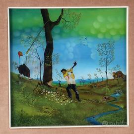 Olio su vetro. In basso a sinistra presenti la firma e la data, accompagnate dal