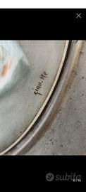 Dipinto olio su placca con pittura di limonges anni 50 in cornice di metallo argentato