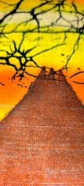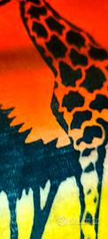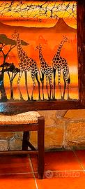 Dipinto paesaggio faunistico africano Su Telo di cotone misto seta. Arte Decorativa Africana Mis.70*50 cm