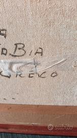 Olio su tela 50X40 del maestro F. Filosa da Castellammare di Stabia ritraente il porto di Torre del Greco, con cornice a cassonetto e vetro. Firmato sul retro della tela.