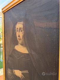 Dipinto olio 1700 ritratto donna in nero con libro