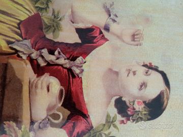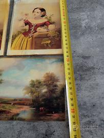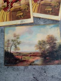 piccolo dipinto a olio probabilmente su cartoncino, inglese fine 800 e due cartoline stessa epoca incollate su tavoletta di materiale rigido . Per collezionisti.