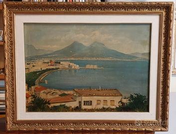 Vecchio dipinto olio su tela firmato Errico Rosario, un classico paesaggio di Napoli ripreso dalla prospettiva più bella e caratteristica dalla collina di Posillipo. L'artista ha messo , in primo piano , un caseggiato al posto del classico pino mediterraneo al fine di dare profondità e personalita' all'opera che risale alla prima metà del novecento. Le misure sono 50x70 e con la bellissima cornice in legno 90x69. Le condizioni generali sono ottime. Valuto offerte