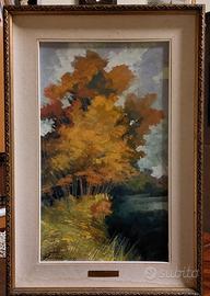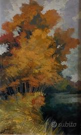 Raimondo Giovanetti nasce il 1898 e muore a Milano il 1978, artista paesaggista . Il dipinto ritrae uno scorcio di paesaggio boschivo con tutti i meravigliosi colori dell'autunno. Il dipinto è in perfette condizioni mentre la cornice reca qualche segno del tempo, sul retro descrizione dell'opera, la data e notizie sullo studio dell'artista. Le misure sono 30x50 e con la cornice 44x64
