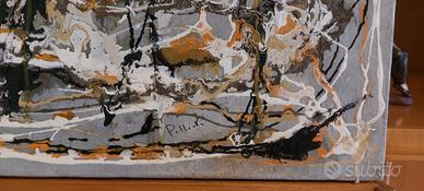 Vecchio dipinto olio primo Novecento.. Scuola espressionismo astratto, massimo esponente Jackson Pollock. L'opera è dei primi anni del novecento telaio e tela sono in perfette condizioni e originali dell'epoca, sul telaio sono presenti timbri di una galleria di Parigi e alcune scritte forse del vecchio proprietario, la firma è in basso a destra purtroppo a mio parere non originale, resta comunque un dipinto coevo al periodo di Pollock. Le misure sono 55x46, il dipinto era fornito di cornice che ho dovuto togliere per le pessime condizioni in cui si trovava. La cornice in foto è stata adattata da me, ed è provvista di vetro.